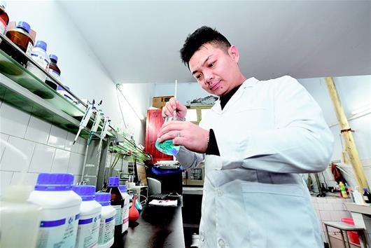 在硒宝贵公司研发大楼二楼,有郑寅的一间实验室。实验室里,架子上摆满了瓶瓶罐罐,“这是除学校和家之外,我平时来得最多的地方。”郑寅笑着说。