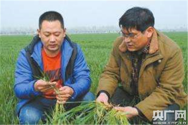 央广网河南分网3月14日消息 3月12日,在郏县长桥镇,郭亚培正在新流转的500亩黑小麦良种繁育基地里指导贫困户喷施高效生物制剂,进行苗期田间管理。