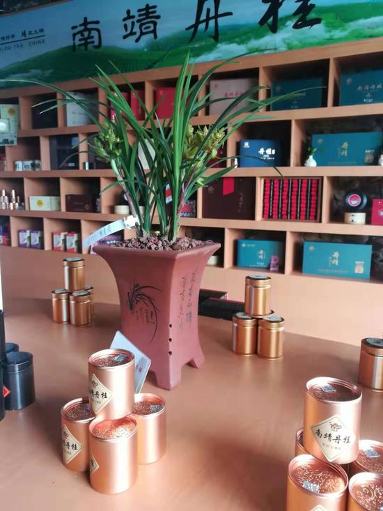 南靖县农业农村局局长尤炎辉介绍,近年来,南靖县委、县政府把茶叶作为农业主导产业加以培育壮大,大力建设生态茶园,实施茶叶加工清洁化改造,推广“五新”技术,不断提升茶叶质量,有力地推动了现代茶业的发展,南靖确定了“南靖土楼茶”公共品牌及其LOGO,广告语为“南得好茶 靖在土楼”,吉祥物为“茶贝贝”,主推品种是丹桂。按武夷岩茶加工工艺加工的丹桂产品,外形紧结,色泽褐润,香气馥郁悠长,滋味醇厚回甘,汤色橙黄明亮,叶底软亮,耐冲耐泡,韵味独特。